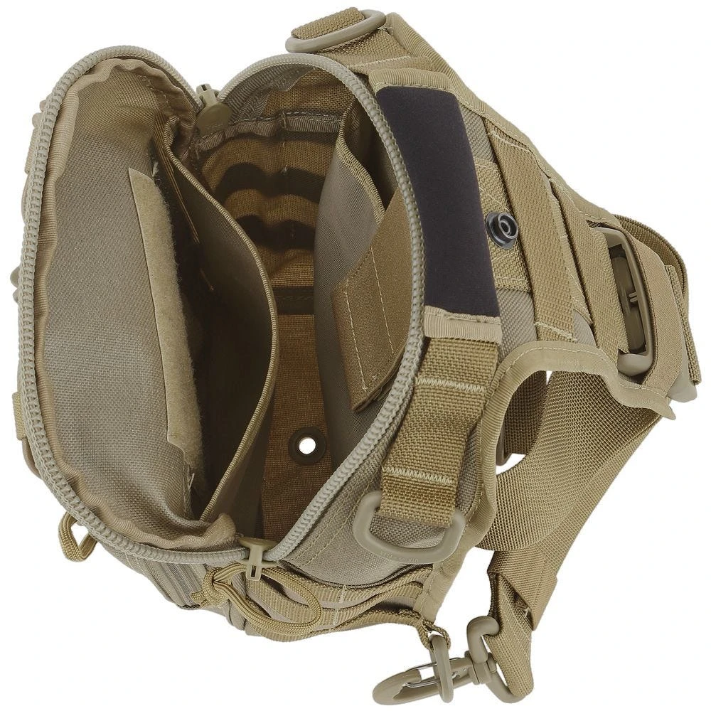 ambidextrous shoulder pack offers secure and easy to access storage