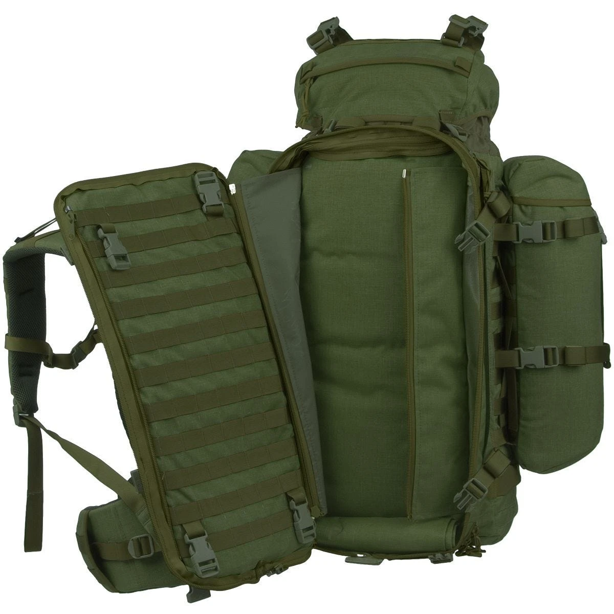 - Fully removable stiffened back section with internal MOLLE panel,